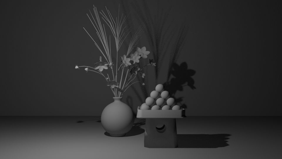 モデリングソフトAutodesk Mayaで作った月見の三方とすすき。