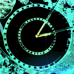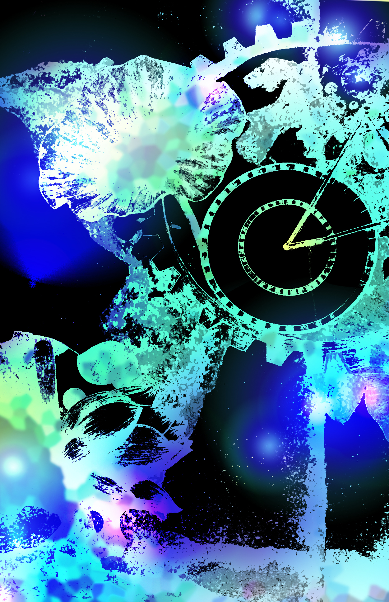 アナログで描いたものをデジタルで「時計・時間」を題材に加工したもの。元の絵は「自然・花」を題材にした絵と同じ。