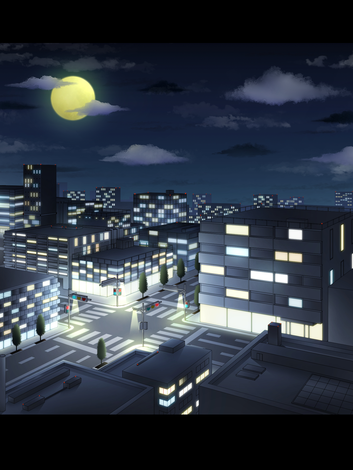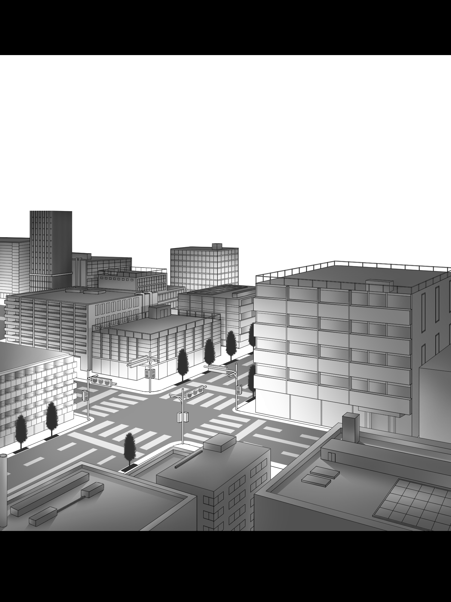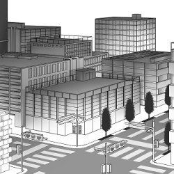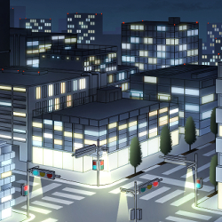 「夜の町」の絵の黒白トーンの線画