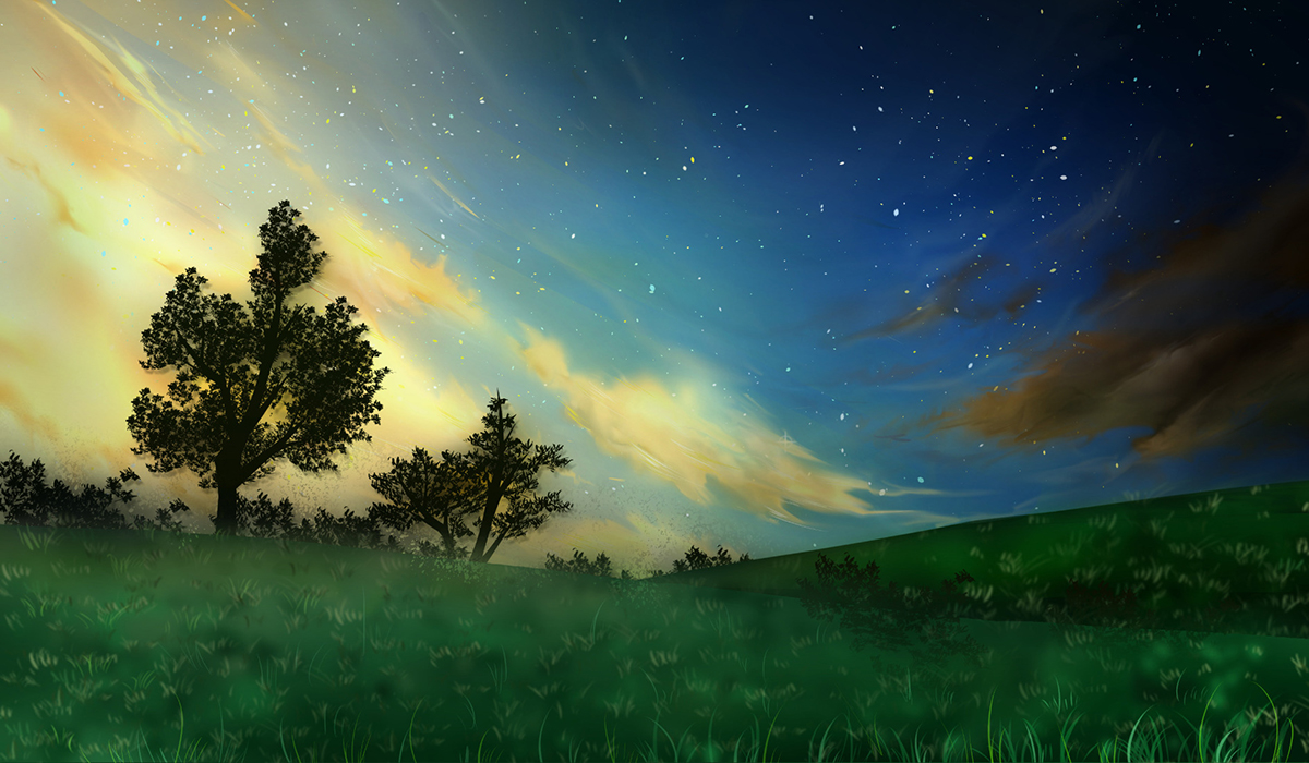 アナログで描いたものをデジタルで「自然・花」を題材に加工したもの。元の絵は「時計・時間」を題材にした絵と同じ。