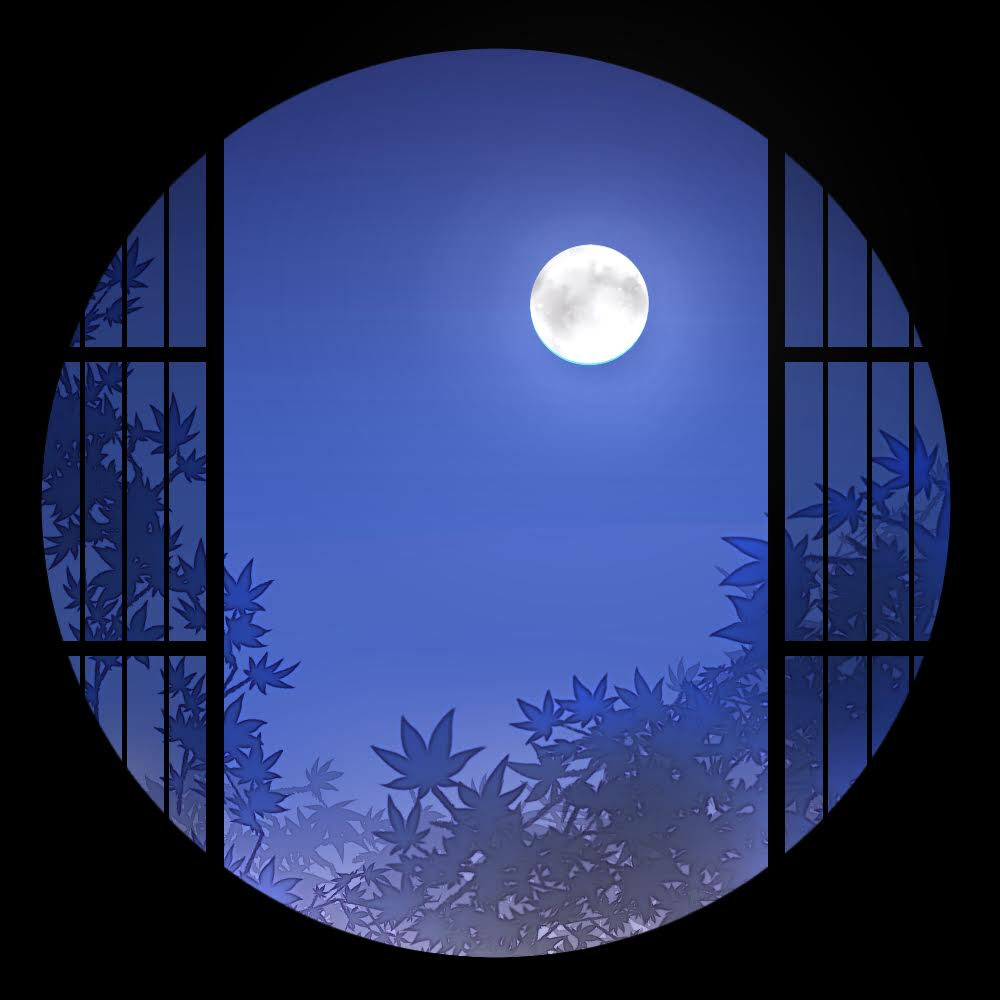 開けた障子から見える夜の庭